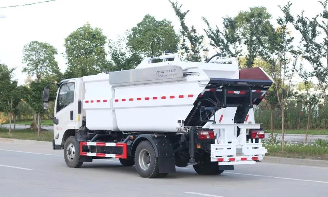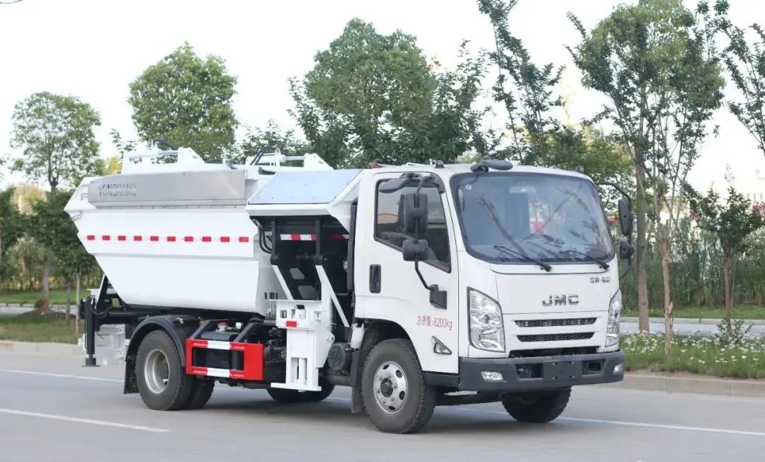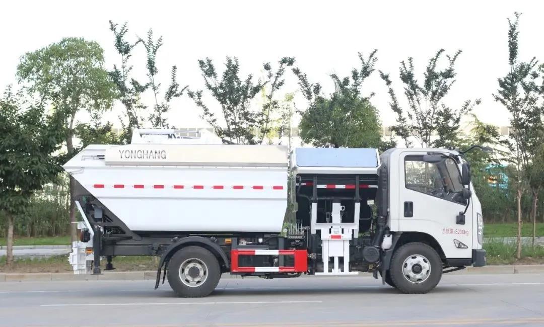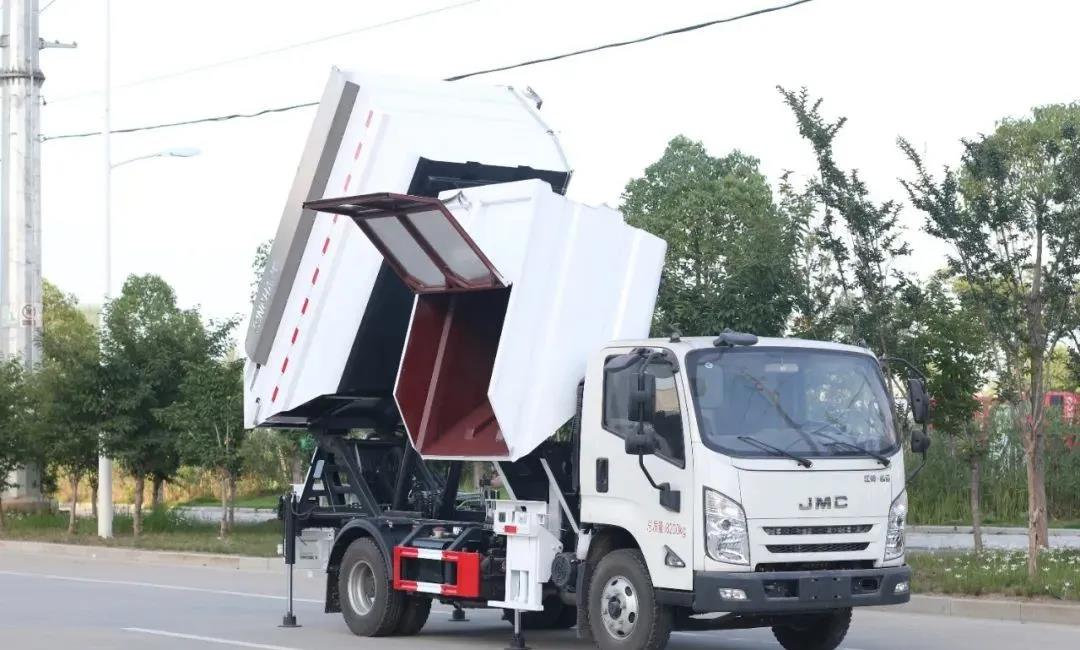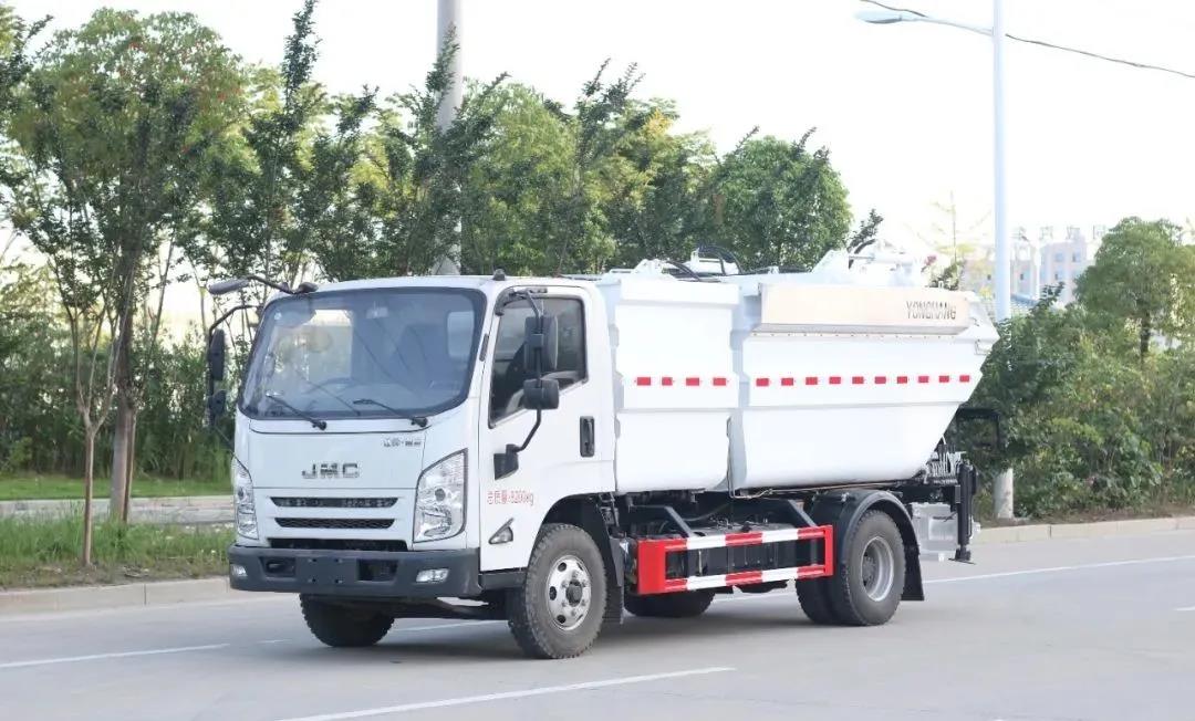 江鈴凱運自裝卸式垃圾車是永航公司根據市場需要自主開發的一款分類垃圾收集車。該車外形美觀、創意新穎,由汽車二類底盤加裝垃圾箱、翻桶機構、副車架、液壓系統和電控系統等專用工作裝置改裝而成,兼具垃圾分類收集投放、多方位垃圾上料方式、垃圾壓縮及對接卸料功能。適用于城鎮前端垃圾的分類收集轉運,可與大型垃圾壓縮車配套使用,開創了國內分類收集轉運新模式。