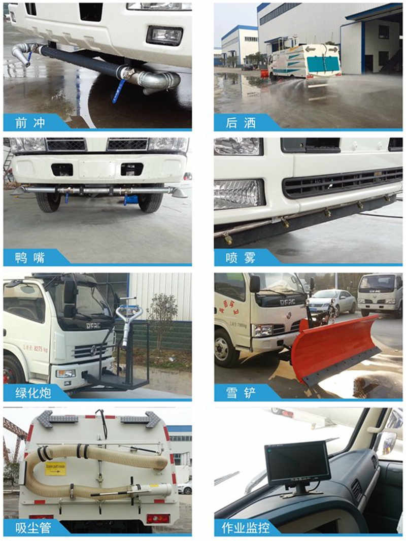 帶掃盤4把,江鈴副發動機;大力馬達;施耐德控件開關;**電磁閥組;免維護自分離式離合器;免維護風機;不銹鋼水箱;不銹鋼垃圾箱;尾部LED箭頭燈;手動泵應急系統;刷臂轉動機構使用高新耐磨工程隔套,免打黃油;精密冷彎無縫液壓油管。 |