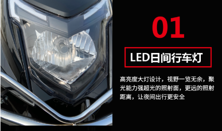 高亮度大燈設計,視野一覽無余,聚光能力超強的照射面,更遠的照射距離。讓夜間出行更安全